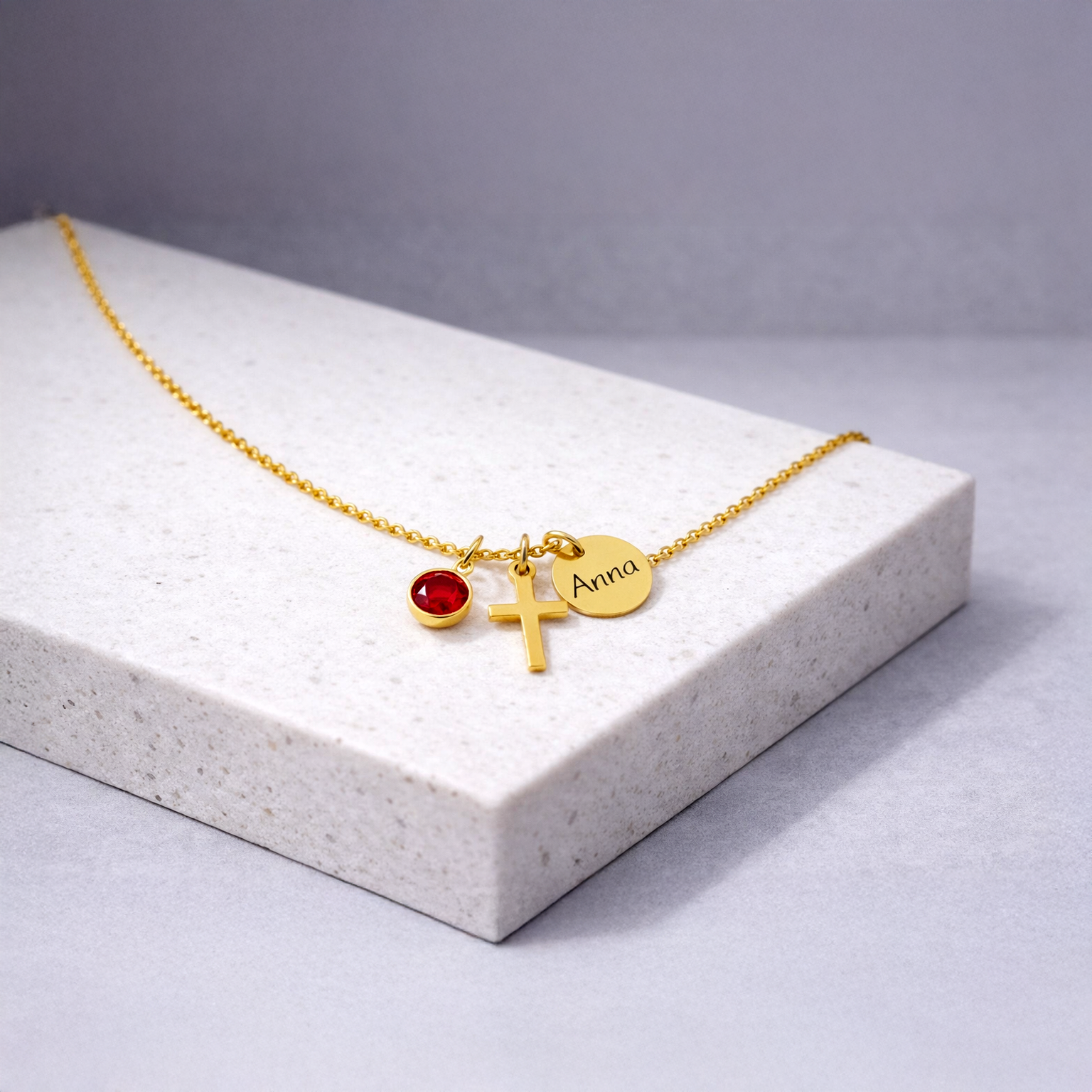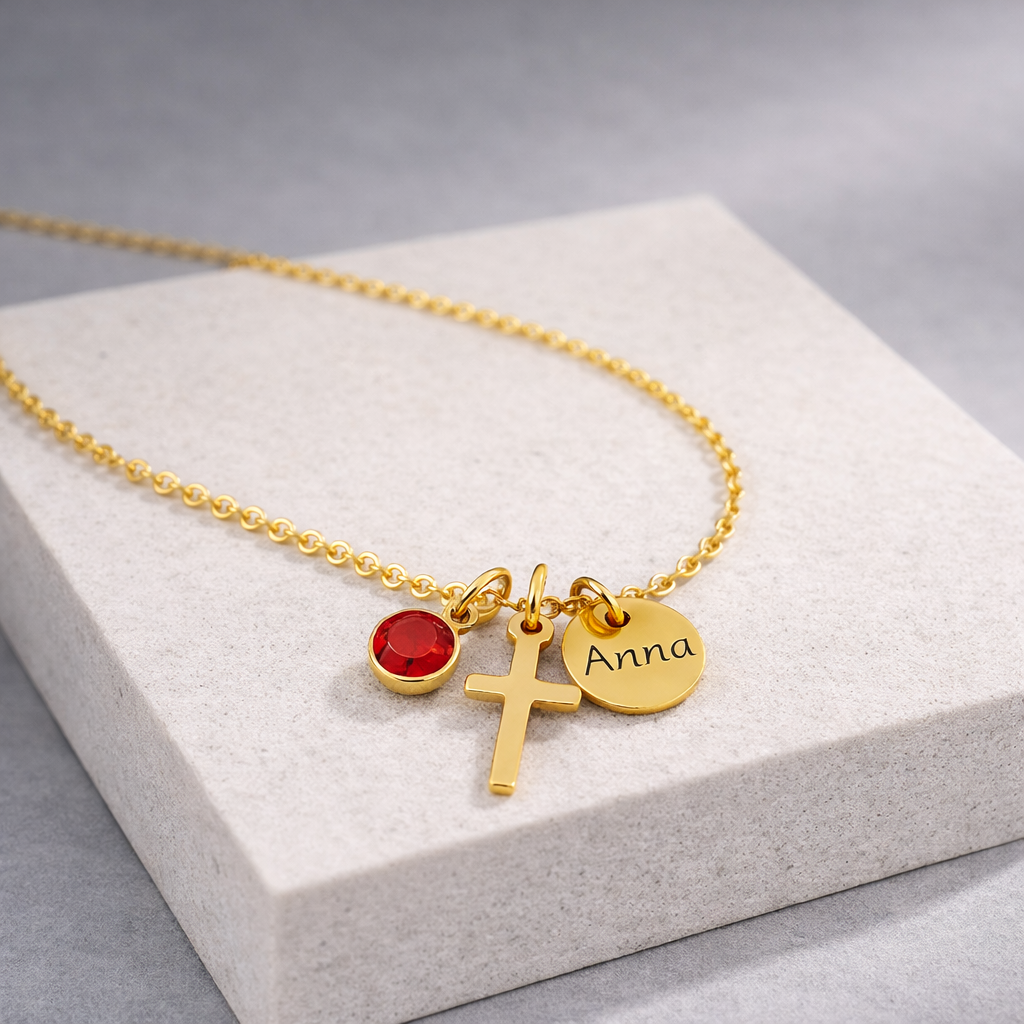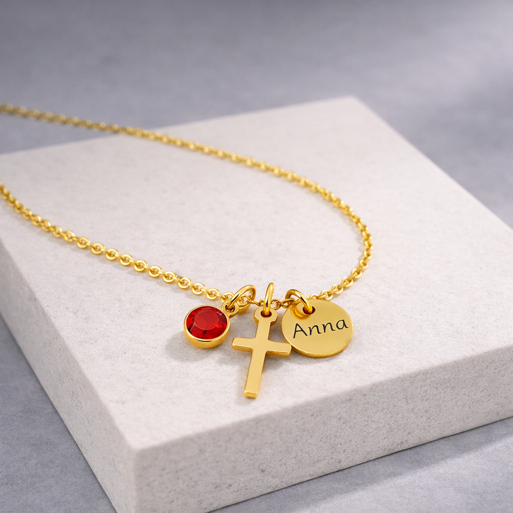 Cross Birthstone Name Necklace