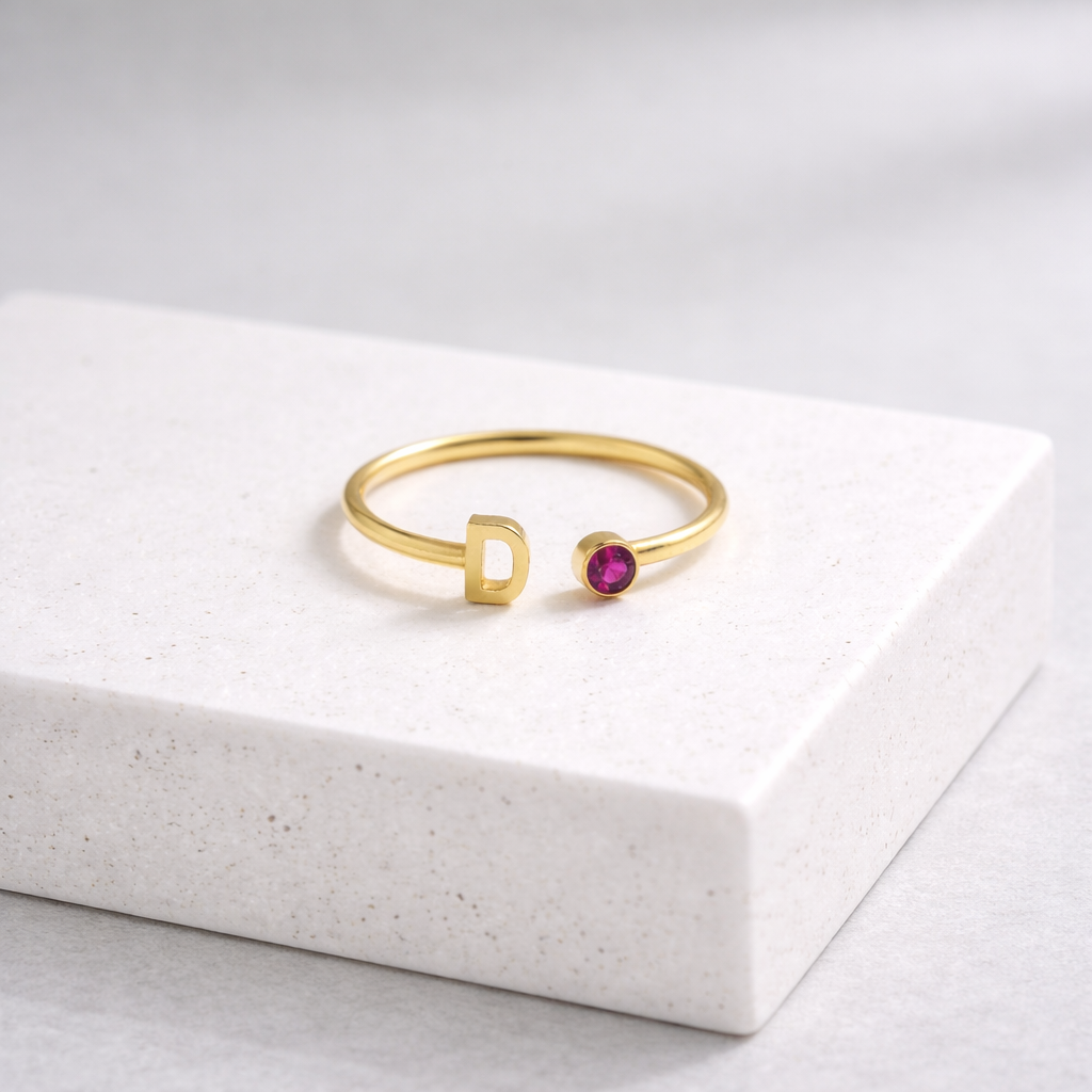 Initial Birthstone Ring